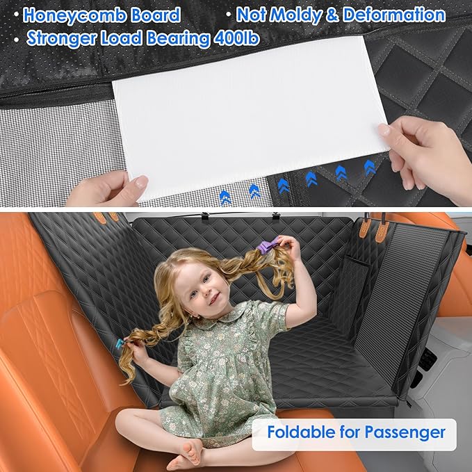 - Expanded Backseat Space: Expanded to 52 x 24.5 inches, providing more space for dogs to play and preventing them from falling or sliding off the seat during sudden braking or parking. Suitable for large dogs, elderly dogs or multi-dog families.