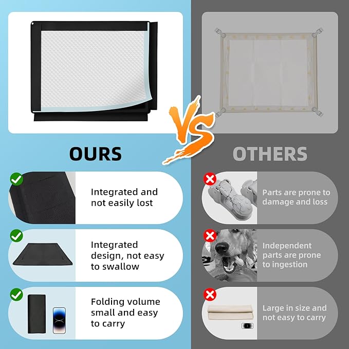 Dog Pee Pad Holder, Puppy Pad Holder, 14 Powerful Magnetic Clips, Indoor Dog Potty, Oxford Cloth Material, Fit 34x28 Pad, Black