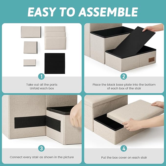 - Easy Assembly & Portability: These dog stairs come with a simple step-by-step assembly guide and a linking system for easy setup. They can also be conveniently folded for storage when not in use.