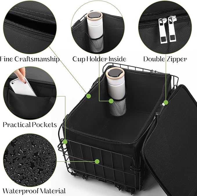 • Large capacity: the ebike rear bike basket, measuring 14.5 x 10.6 x 7.8 inches, provides ample space to accommodate your daily essentials; with a weight capacity of up to 40 pounds, the bicycle storage basket is ideal for carrying groceries, fruits, and food and even small pets