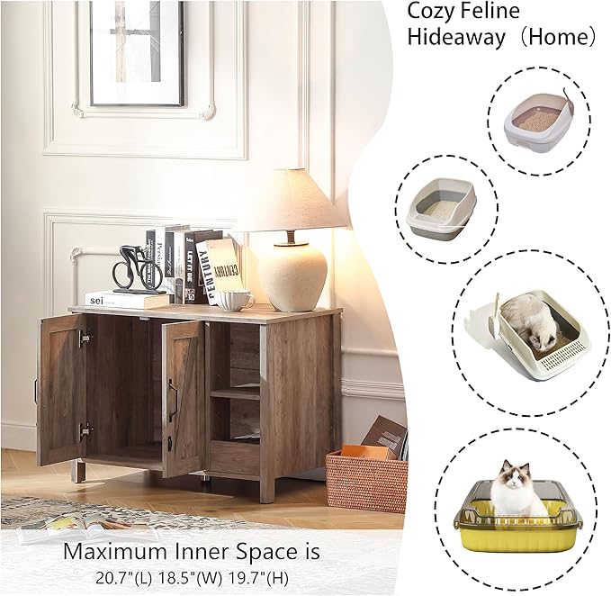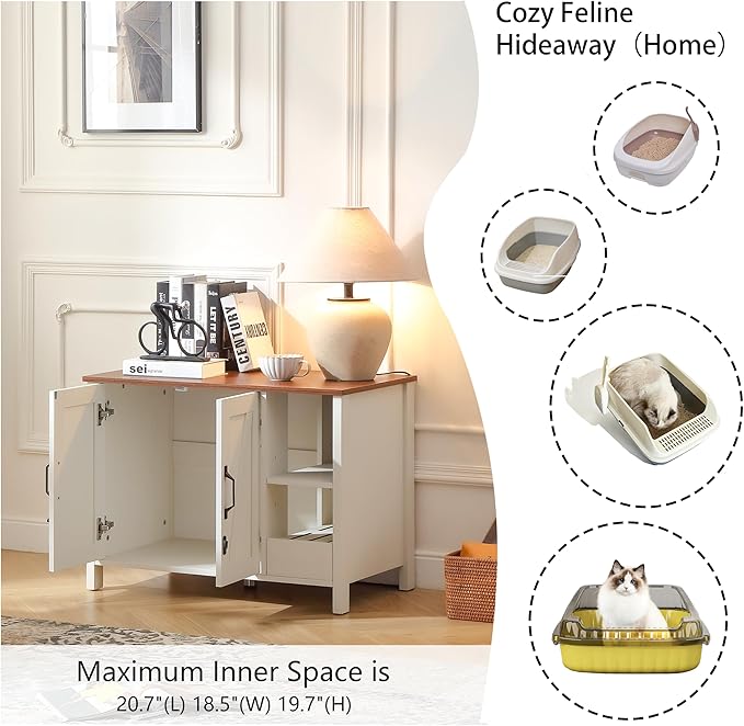 - 4)【Easy Assembly of litter box enclosure furniture】;All parts and accessories are labeled, plus step-by-step instructions are included to ensure a quick and easy setup.We have streamlined all possible steps without compromising quality to achieve optimal and straightforward installation process.