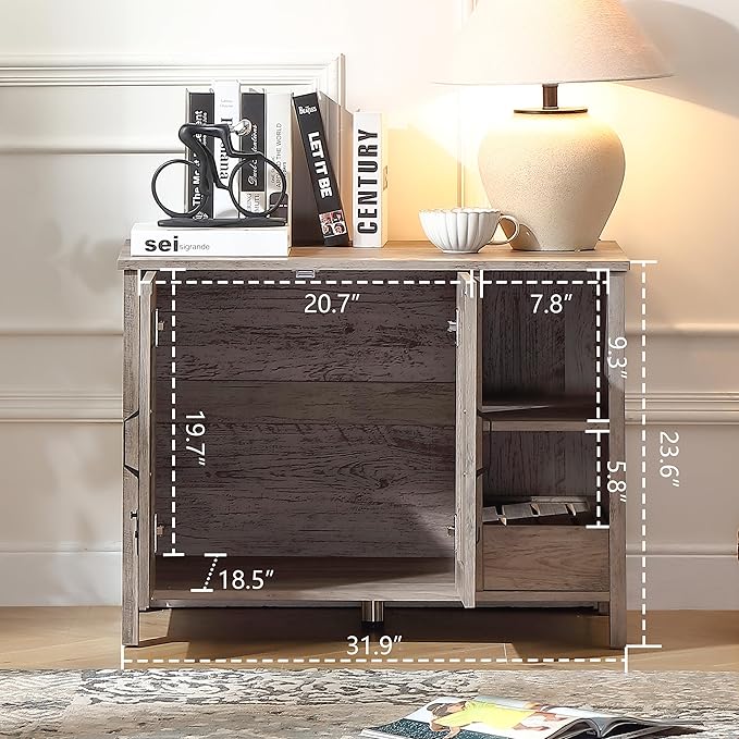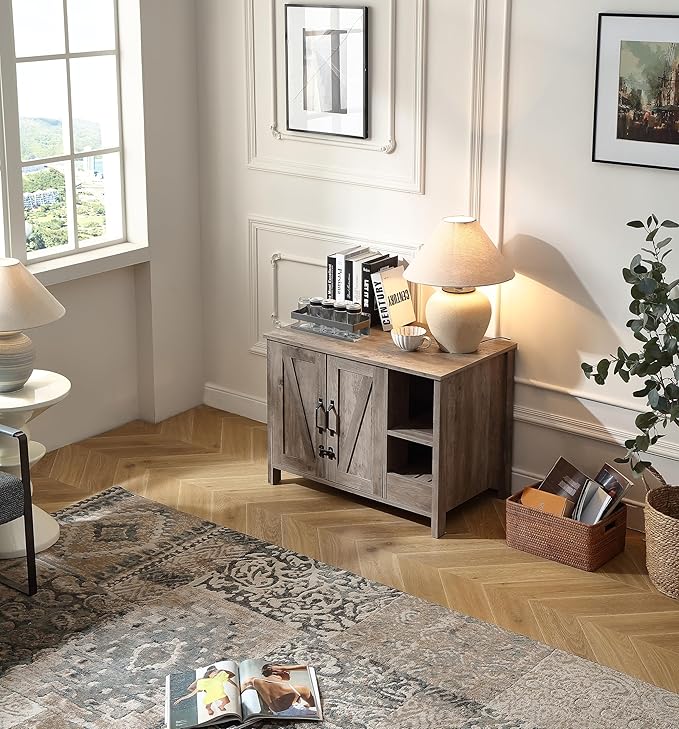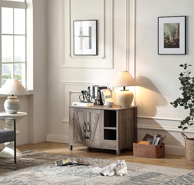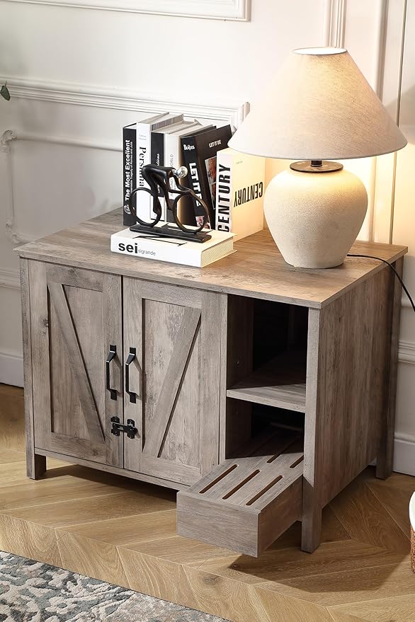 31.9'' Small Cat Litter Enclosure,Adjustable Shelf for Dog Proof and Storage,Locks Added for cat,Cat Litter Collector,Small Indoor Cat House,Grey