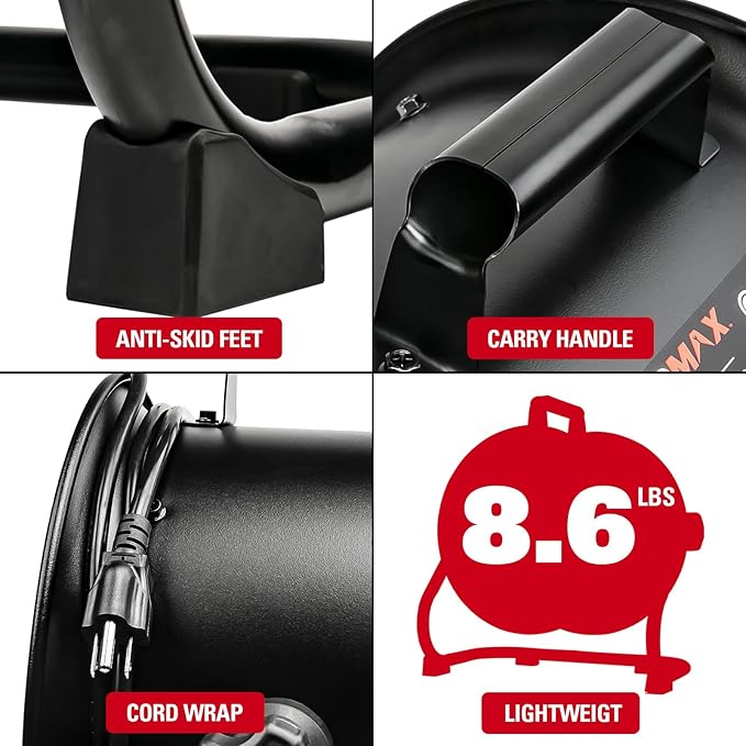 - 【Sturdy & Portable Design】 Built with a durable metal construction and aluminum blades, this high-velocity fan offers long-lasting performance, making it a reliable investment. A convenient carry handle allows for effortless transportation, and the 6.5 ft cord wrap ensures easy storage