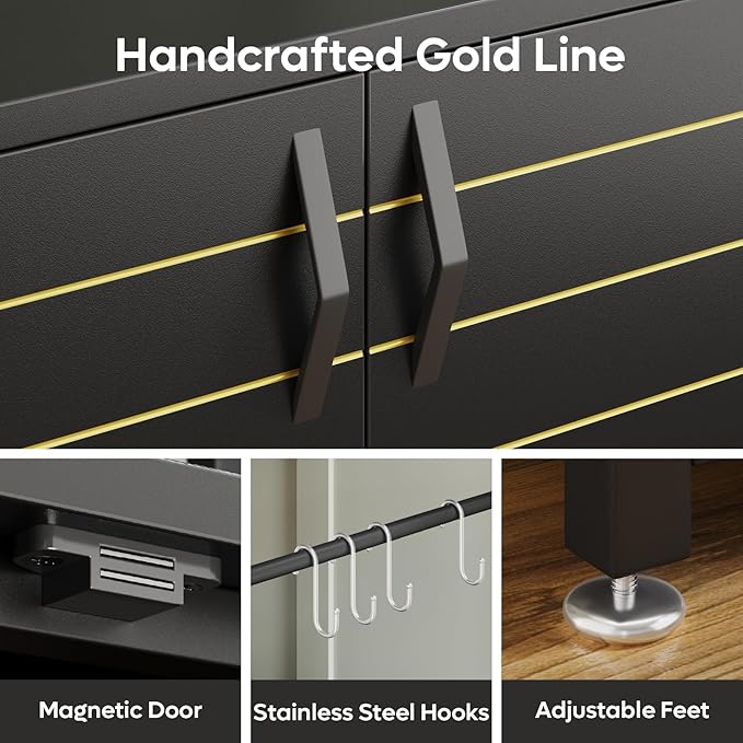 - Aquarist-Friendly Design: Designed for dedicated aquarists, the 20-gallon fish tank stand features Magnetic Cabinet Doors for easy access, four hooks for hanging nets or tools, and adjustable feet for improved stability