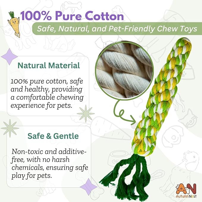 - Safe & Durable Materials: Made from 100% non-toxic, eco-friendly braided cotton, these toys are strong enough to withstand hours of chewing without falling apart, offering a safe playtime experience.