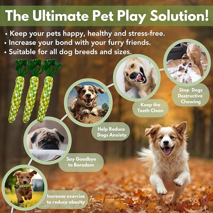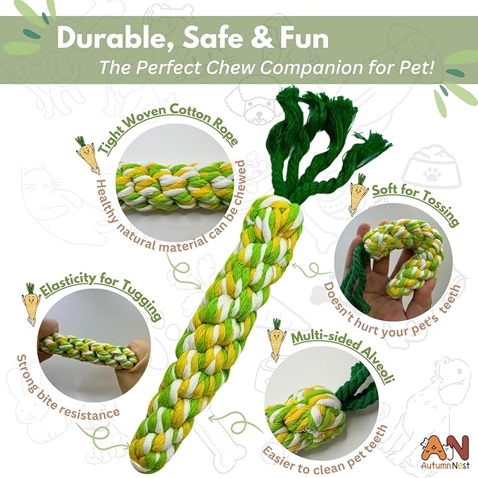 - Multi-Pet Suitable: The AutumnNest 3PCS Woven Carrot Pet Rope Toys are designed for dogs, cats, rabbits, and other small pets, making them ideal for a variety of animals, from puppies to adult pets.