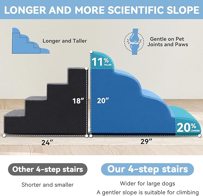Dog Ramp and Stair for Bed 16" H-20 H,3-Step Cat Stair for Sofa and Chair,4-Step Dog Ramp for High Bed and Window,Durable Nonslip Fabric Cover for Indoor (Blue-20“H, Pet Friendly, 4)