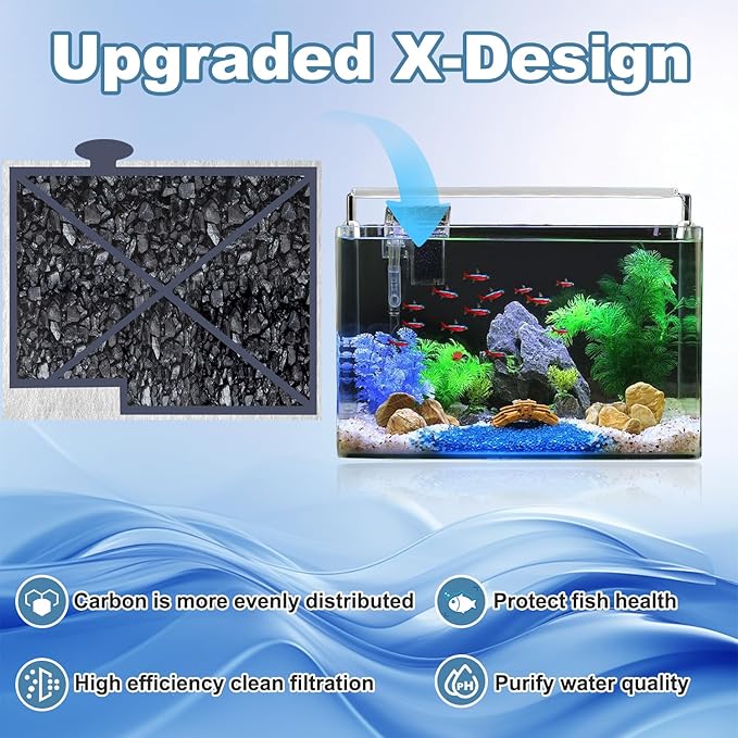 - High Efficiency Fish Tank Filters:The filter cartridges for aqueon made of high density cotton + 50% more nutshell activated carbon+zeolite,Offer triple water filtration effect that effectively fiton-anoabsorb 99% of the impurities. It is able to quickly capture leftover fish food, fish waste, and other small particles in the tank.