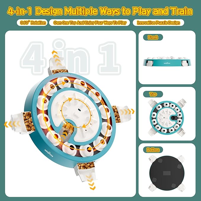 - Slow Eating for Better Digestion β This 4-in-1 dog puzzle feeder slows down eating speed, helping reduce choking, vomiting, and digestive issues. Designed as an interactive dog puzzle toy, it supports healthier mealtime habits while turning feeding into an engaging challenge.