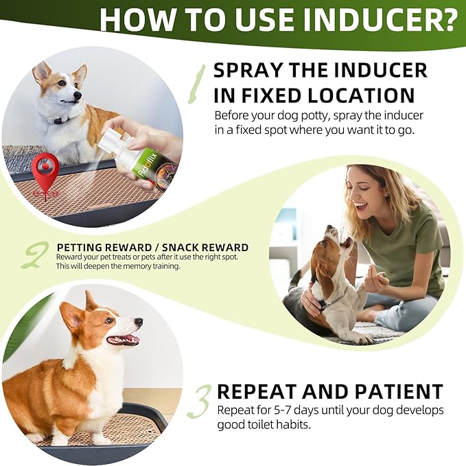- Attracts Dogs to Pee and Poop in Right Spot - Our spray uses a safe, natural attractant formula to lure dogs to designated areas, whether indoor on pee pads or outdoor in yards, making potty training effortless and effective.