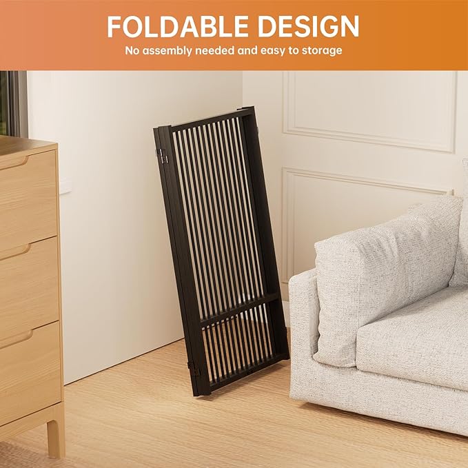 - [Versatile Sizes]: Our pet dog gate is available in 24-inch and 32-inch heights, perfect for puppies, small and medium dogs pets. Multi-choice of 2 panles, 4 panles and 6 panles, suitable for stairs, kitchens, bedroom doors, corridors and other indoor and outdoor forbidden areas.