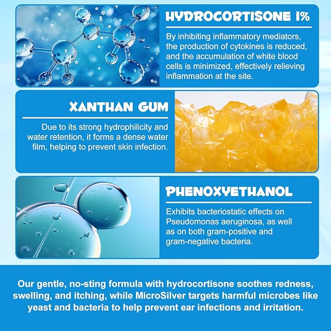 - 【1% Hydrocortisone For Cat & Dog Ear Care】The Cat & Dog Ear Cleaning Drops of 1% Hydrocortisone helps reduce redness, swelling, and itching, ensuring your pet feels more comfortable