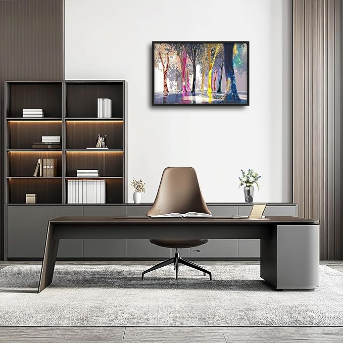 Framed Large Trees Wall Art for Living Room, Oversized Abstract Forest Wall Decor Colorful Nature Canvas Painting Modern Artwork Home Decoration for Living Room Bedroom Dining Room Office 36"x24"