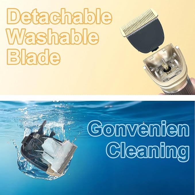 Dog Pet Grooming Kit Low Noise - Cordless Rechargeable Clippers for Dogs/Cats - Upgraded Accessory Version with Two Scissors and a Storage Bag (Gold)