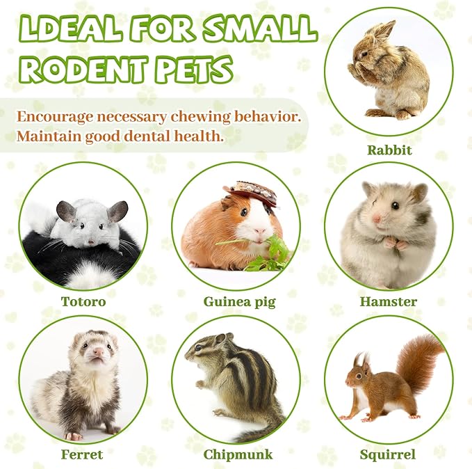 - Multiple Species: Ideal for rabbits, guinea pigs, chinchillas, hamsters, gerbils, parrots, and other small animals with active chewing needs