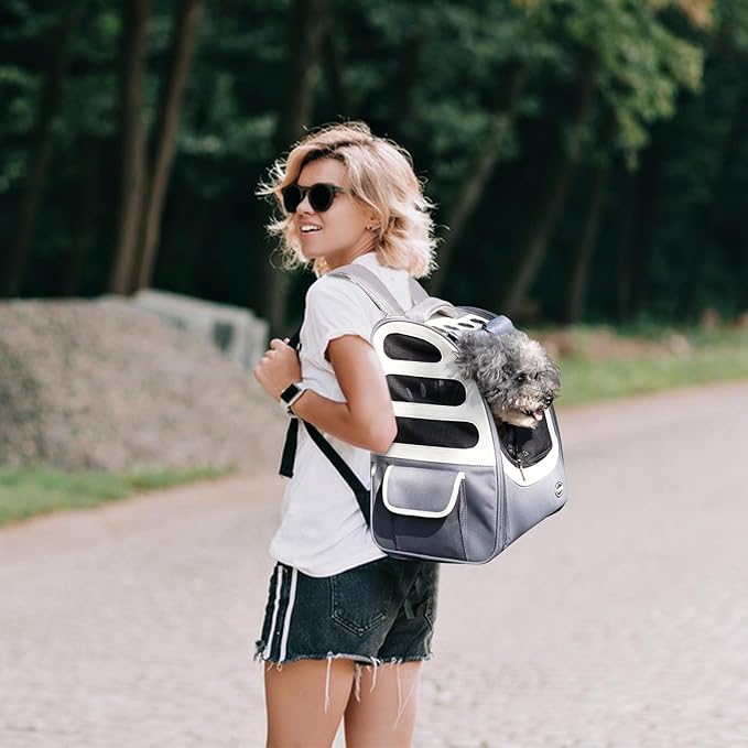 Dog Backpack, Ventilated Pet Hiking Backpack Travel Bag, Airline Approved Cat Backpack for Travel, Hiking, Outdoor Use(Gray)