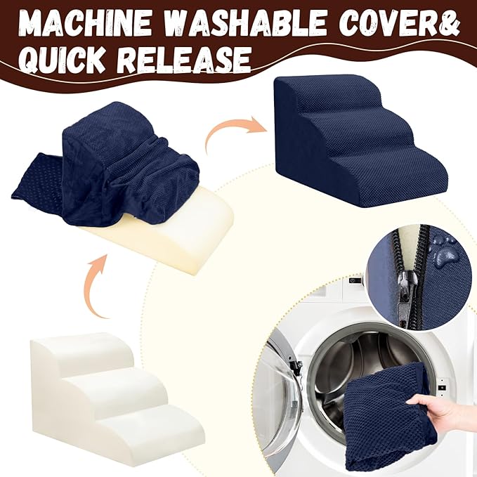 - Double Sided Anti Slip: The dog steps cover is made of corduroy with greater friction than other fabrics, which provides extra grip while in use, the bottom features nonslip rubber dots, preventing pets from sliding while climbing, providing pets with double safety protection