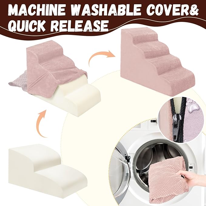 - Double Sided Anti Slip: The dog steps cover is made of corduroy with greater friction than other fabrics, which provides extra grip while in use, the bottom features nonslip rubber dots, preventing pets from sliding while climbing, providing pets with double safety protection