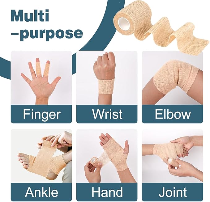 - Self Adhesive Bandage: Package includes 120 rolls of skin color self adhesive bandage wrap. Each roll measures 2 inch wide and 5 yards long after stretching. It easily adheres to itself but will not stick to other surfaces such as skin or hair, making it easy to pull off and change bandages