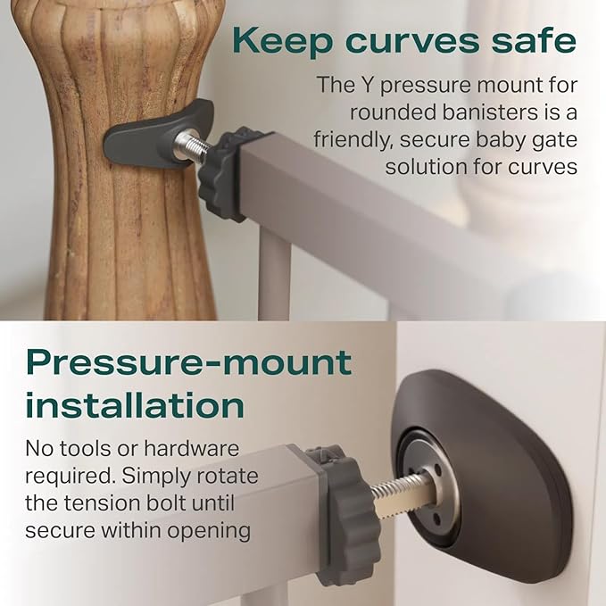 - Stair-Ready with Y-Bolts & Smooth Pedal Step: Includes Y-shaped bolts for secure, no-drill mounting on round stair railings. The low-profile step-over pedal lets strollers roll through effortlessly—ideal for busy families on the go.