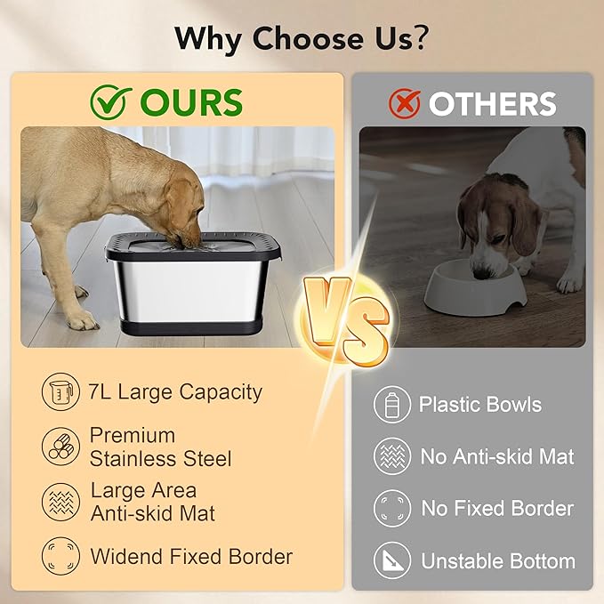- 7L Extra Large Capacity: 1.8 gallon heavy-duty dog water bowl easily meets the needs of large/giant breeds or multi-pet households, reducing frequent refills. Perfect for daily use or trips, lets you focus on quality time with your pet