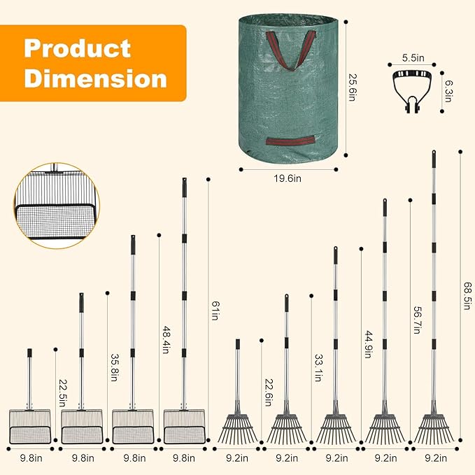 - 【Adjustable Chicken Poop Rake】: Easy to assemble rake head and handle together, adjustable long rake handle reaches up to 68 inches making pick-up and collect chicken manure, garden leaf and debris more comfortable, no bending over for both adults and kids
