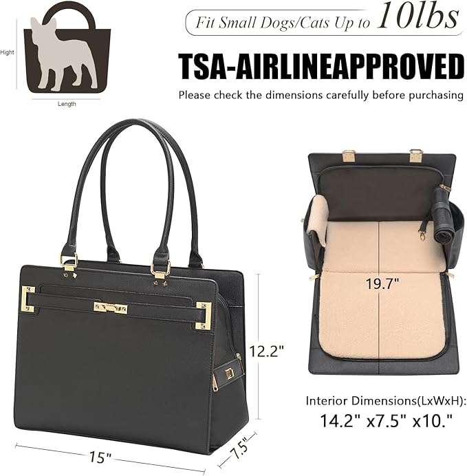 2-in-1 Stylish Dog Purse Carrier Soft-Sided Carriers Travel Tote Bag for Small Dogs Cats, Fashion Foldable Pet Bag for Puppies Small Animals with Pockets (Black, 15" L x 7.5" W x 12.2" H)