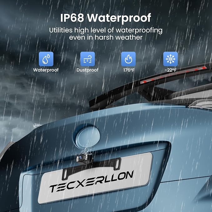 - IP68 Weatherproof Durability: Built tough for all seasons! Our IP68 waterproof wired backup camera withstands heavy rain, snow, and dust. Trust it to deliver a stable image for your sedan or truck—year after year.