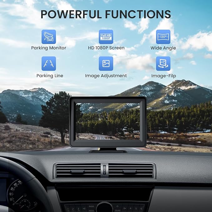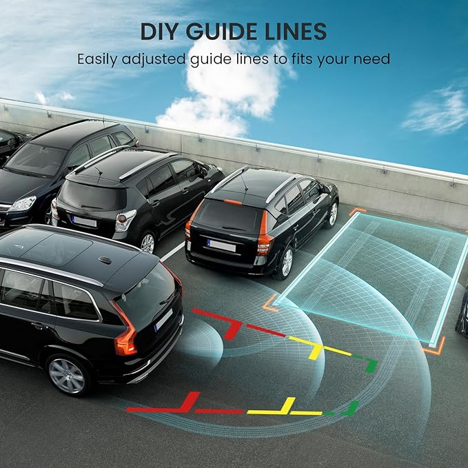 - Night Vision Clarity & Safety Guides: Reverse safely at night with 6 powerful infrared lights, HD 1080P resolution, and dynamic reversing guidelines. This truck backup camera’s 130° wide-angle lens eliminates blind spots, giving you crystal-clear views even in total darkness.