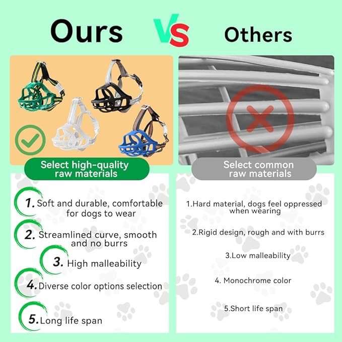 - LIGHTWEIGHT & DURABLE:Made from odorless TPE silicone, this muzzle is lightweight enough for small dogs yet strong and sturdy enough for medium and large dogs, ensuring durability and safety during daily use.