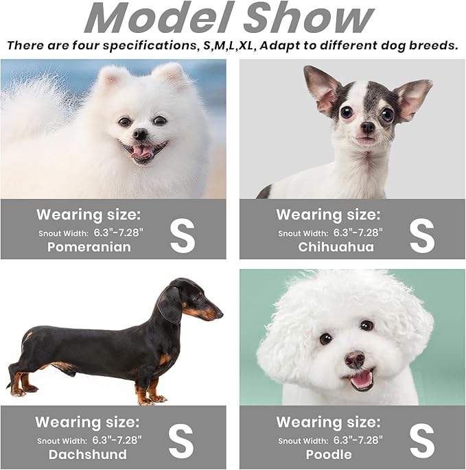 - PLEASE MEASURE BEFORE BUYING:Measure both snout circumference and snout length before purchasing. If your dog's snout length exceeds the size range by about 1 inch, choose the next size up. For long-snout breeds like Dobermans, make sure the snout length fits as well.
