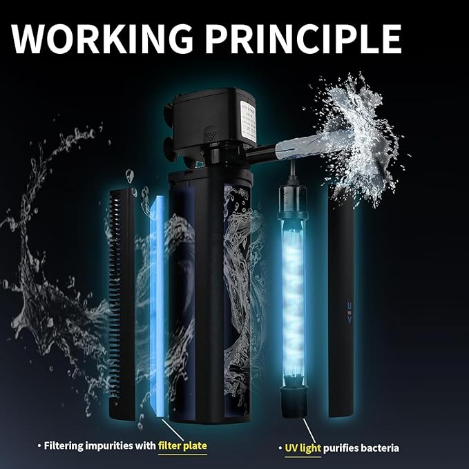 - SEPARATE SWITCHES - Control the water pump and fish tank light separately. When you only want to use the aquarium filter function, you can turn off the fish tank U-V light separately.