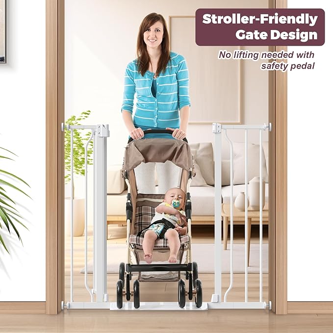 - Extra Tall Baby Gate: The baby gate stands at a secure 34 inches tall, providing superior protection against climbing toddlers and curious pets. The taller design ensures your little one stays safely contained, giving you peace of mind while preventing accidental falls or escapes