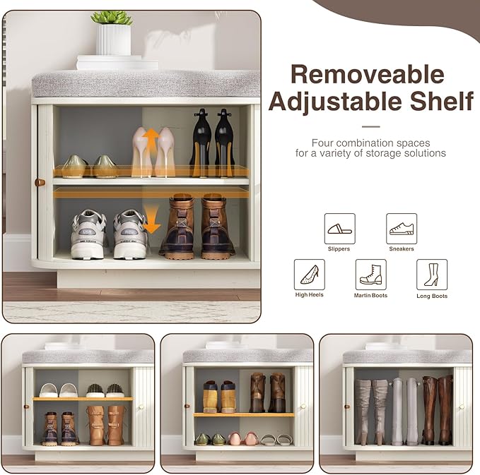 - Space-saving Sliding Door Design: When you sit on this entry way bench to change your shoes, the sliding door allows you to open and close it more conveniently to pick up and place your items, while keeping them away from dust and pets