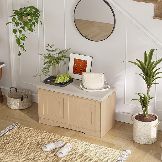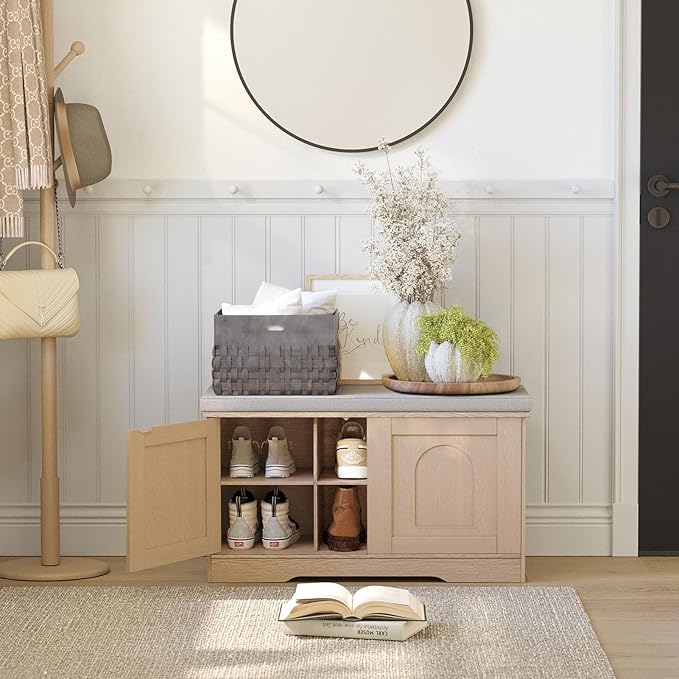 - 【Effortless Push-to-open Door 】Feature a fully enclosed design with a push-to-open mechanism, keeping shoes clean and tidy while avoiding accidental bumps against door handles during use. Reasonable height and soft cushion let you change shoes by sitting on the bench more comfortable without bending down or squatting