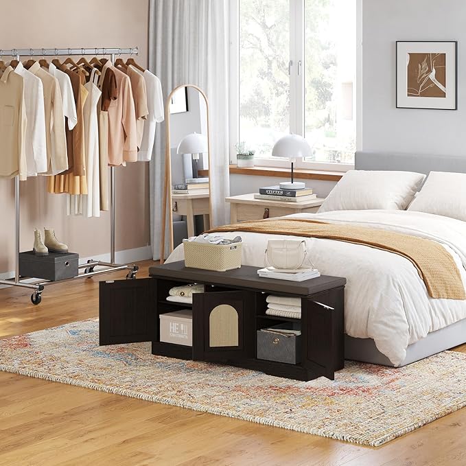 - 【Effortless Push-to-open Door】Feature a fully enclosed design with a press-to-open mechanism, keeping shoes clean and tidy while avoiding accidental bumps against door handles during use. Reasonable height and soft cushion let you change shoes by sitting on the bench more comfortable without bending down or squatting