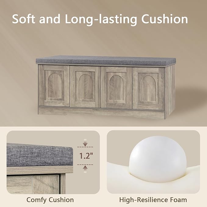 - 【Effortless Push-to-open Door】Feature a fully enclosed design with a press-to-open mechanism, keeping shoes clean and tidy while avoiding accidental bumps against door handles during use. Reasonable height and soft cushion let you change shoes by sitting on the bench more comfortable without bending down or squatting