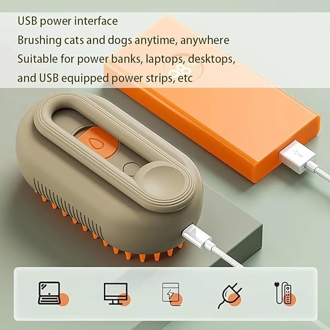 4 in 1 Cat Steam Brush Rechargeable pet spray comb Steam Brush for Cats and Dogs, Massage, Cleaning, Shedding & Combing Multifunctional Hair Removal Anti Static Grooming Tool for home (Beige)