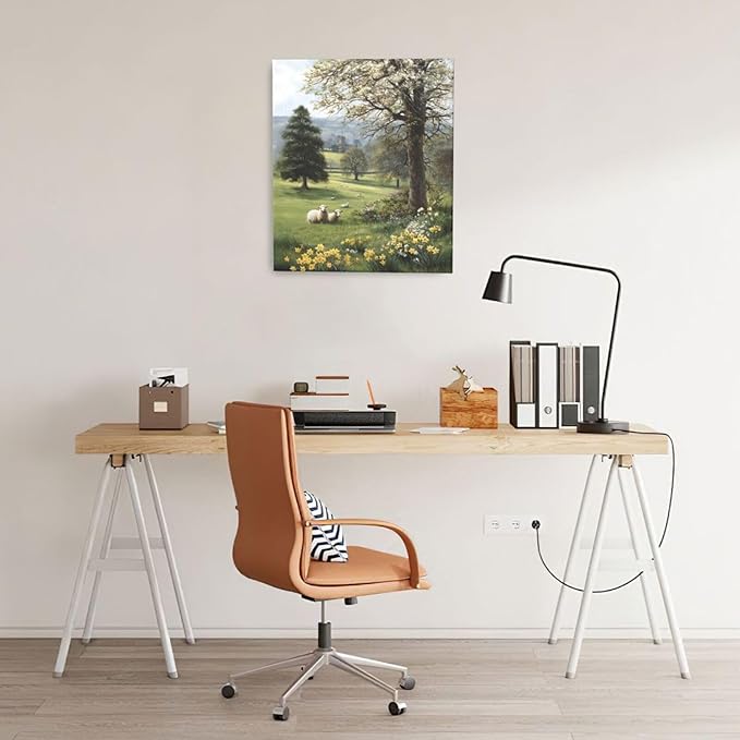 Country Sheep Canvas Wall Decor Farmhouse Rustic Lamb Wildflower Wall Art Nature Countryside Landscape Pictures Painting Print Framed Artwork Decorations for Bathroom Living Room Bedroom 24"x20"
