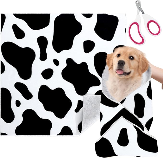 Cat Grooming Wrap for Cutting Nails with Cat Nail Clipper, Self-Adherent Wrap for Ear Cleaning, Anti-Runaway/Scratch, Cat Swaddle Wrap for Calming, Cow White