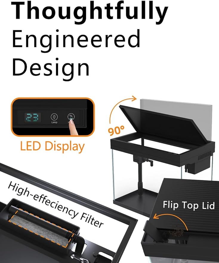- Thoughtfully Engineered Design: Flip-top lid enables effortless feeding and maintenance, complemented by energy-efficient 0.5W dual-row LED beads for lasting brilliance. Crafted with premium packaging, Barkbuddy Smart Aquarium is ideal for gifting while ensuring enduring quality.