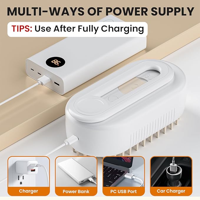 - 🐱【4-in-1 Professional Care】Ours pet steam brush offers pet care with its 4-in-1 functions: detangling, massage, deep cleansing, and anti-static. It emits micron-level steam that penetrates deep into hair follicles to soften the coat, while the soft silicone brush head massages skin, reduces shedding effectively—giving your pet a spa-like treatment right at home.