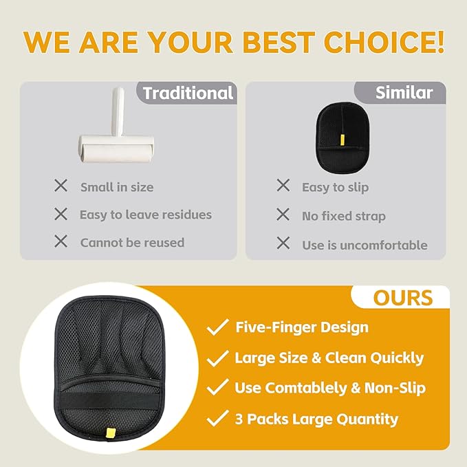 - Reusable & Easy to Clean: Pet hair removal glove are washable and reusable.Hair cleaning gloves simply rinse with water or wipe off hair after useβready for the next cleaning session.Ditch disposable lint rollers