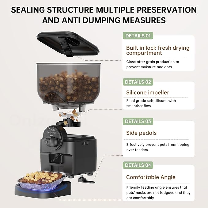 - App Remote Control with Stable 2.4G WiFi Programmable automatic feeding system simplified . Easily set up feeding times, portion sizes, and monitor your petβs feeding history. Use the app to control portions, timed release schedule meals (up to 10 timed feeds/day with 1-12 portions per meal), Compatible with 2.4G WiFi (not 5G) for reliable remote access from your phone controlled or tablet.