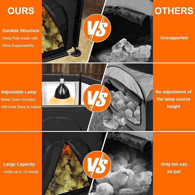 - Quick Setup & Versatile Habitat: Featuring a lightweight, tool-free assembly design with lamp hanger, this portable enclosure sets up effortlessly indoors. Perfect for raising chicks, ducklings, and quail with adaptable space requirements.