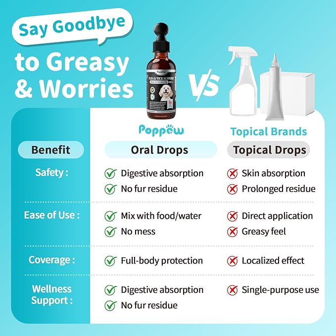 - Natural Flea & Tick Support for Dogs: A gentler way to protect your dogs from fleas & ticks! POPPAW’s oral flea and tick drops provide an easy, plant-based solution for your pets to discourage fleas, ticks, larvae, and mosquitoes, ect. while supporting your pets' overall wellness.