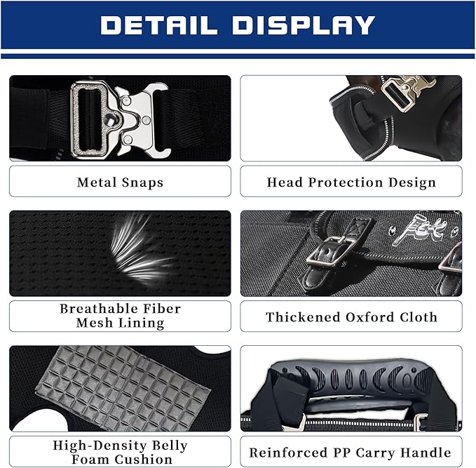 - 【Spine-Friendly Horizontal Design】 The dog backpack carrier’s spine-friendly horizontal design features added head protection and a thickened abdominal foam cushion. This ensures optimal weight distribution, minimizes spinal stress, and delivers maximum comfort and support – especially vital for large breed dogs and senior pets.