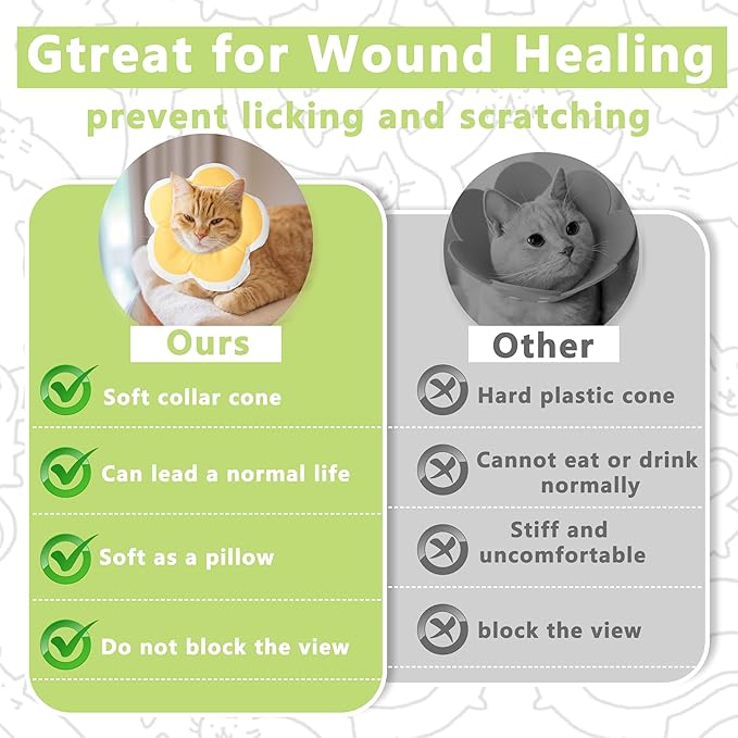 - No impact on daily life: The soft cat cone collar is lightweight, causing no pressure when worn by kittens. It doesn't obstruct their vision, allowing them to eat, drink, and play freely. This unique flower shape cat cone is more like a pet ornament, for pet party, birthday, holiday dress-up,Christmas, it offers you a happy mood.