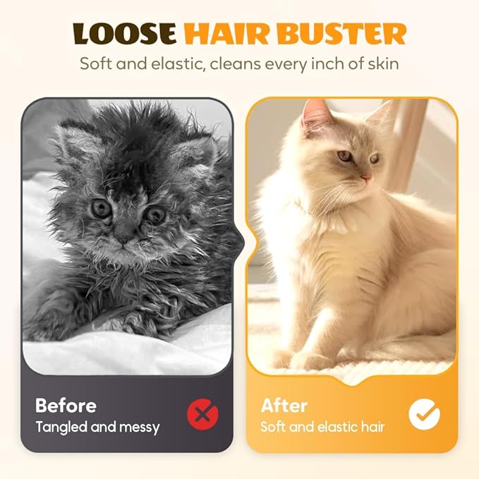 - 【Comfortable Grooming Experience — Wet and Dry Use】This upgrade efficient pet hair remover gloves can be used daily or in the bath, the internal sprayer can be removed at any time for easy cleaning of the glove, the design allows you to brush hard to reach areas such as the tail or face, and you can add conditioner or softener to the spray to enhance the softness and shine of your cat's coat.