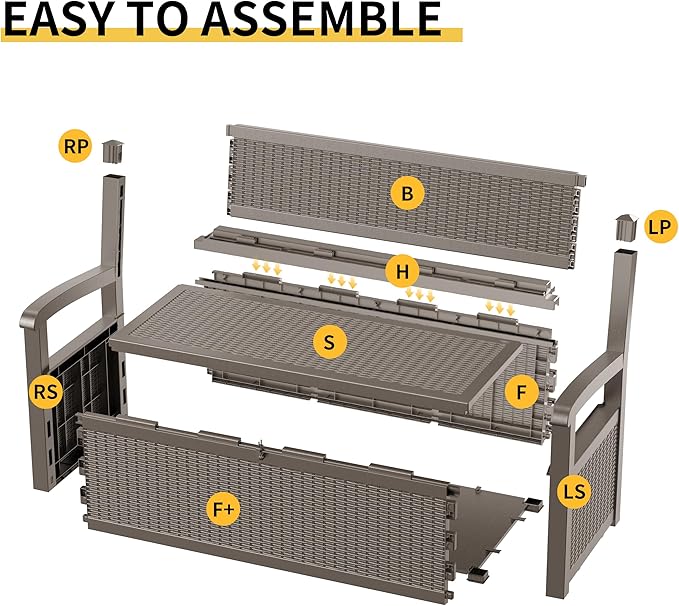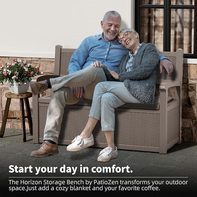- WATERPROOF AND FADE PROOF : Crafted from high-quality, eco-friendly resin, the EasyUp storage bench is designed to be waterproof and UV-resistant, ensuring excellent durability. It withstands harsh sun and rain, maintaining its original appearance and strength in any season, making your outdoor life easier and worry-free.